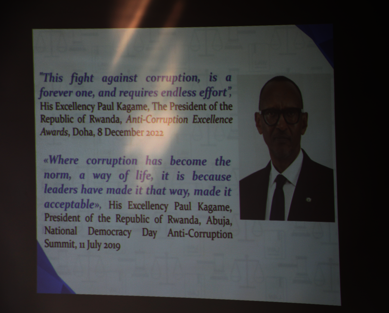 “As you have seen in presentations and discussions, we prioritize serving citizens at the best as possible, so that could not be achieved if there is injustice or corruption, that is why as Rwanda we have a goal that in the year 2050 Rwanda will be in the first place in fighting corruption." She added